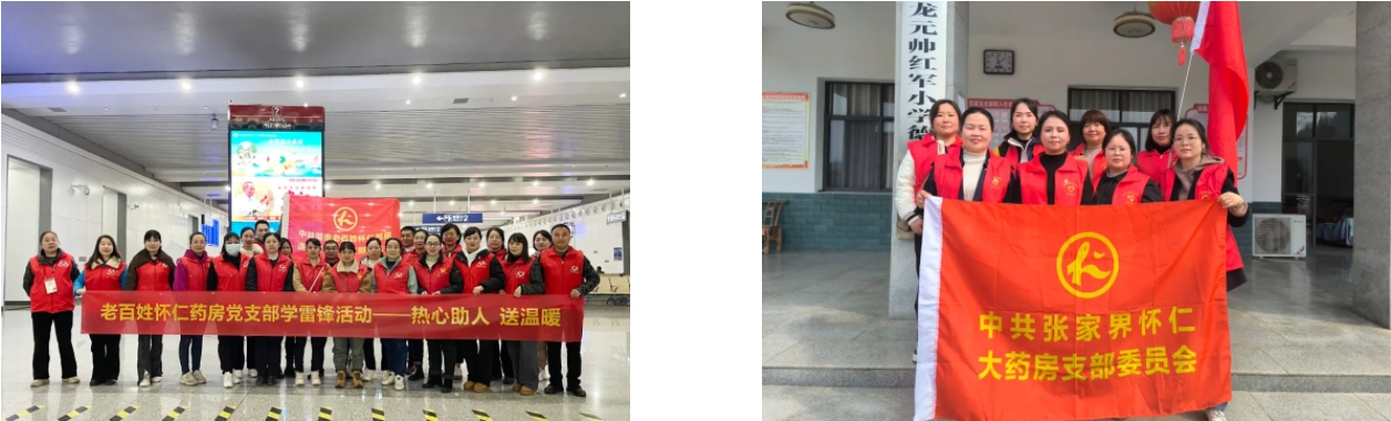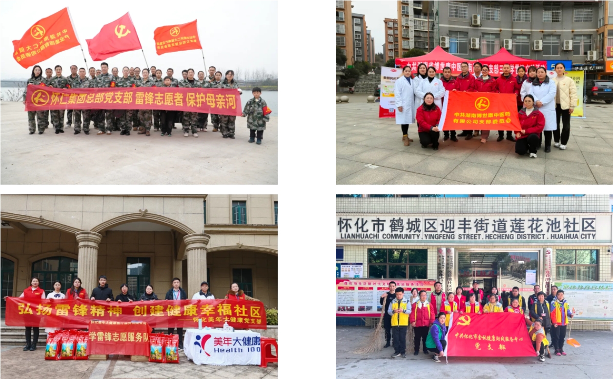 3月,在“學(xué)雷鋒活動(dòng)月”期間,各支部舉辦的活動(dòng)都十分富有特色。懷仁集團(tuán)總部支部在黨委書(shū)記陳毳萍、副書(shū)記舒敏同志帶領(lǐng)下,前往舞水河畔開(kāi)展“雷鋒志愿者保護(hù)母親河”活動(dòng);博世康黨支部在社區(qū)組織學(xué)雷鋒中醫(yī)診療義診活動(dòng);懷化美年大健康黨支部為社區(qū)居民免費(fèi)提供健康咨詢服務(wù),并慰問(wèn)空巢老人;懷化市金秋健康助殘服務(wù)中心黨支部帶領(lǐng)殘疾人朋友走進(jìn)社區(qū),與工作人員一起清潔衛(wèi)生;老百姓懷仁藥房黨支部為旅客提供從進(jìn)站檢票到進(jìn)站上車的一條龍服務(wù)活動(dòng);張家界懷仁藥房黨支部去到桑植縣洪家關(guān)光榮院,為孤老烈屬等送去愛(ài)心物資。