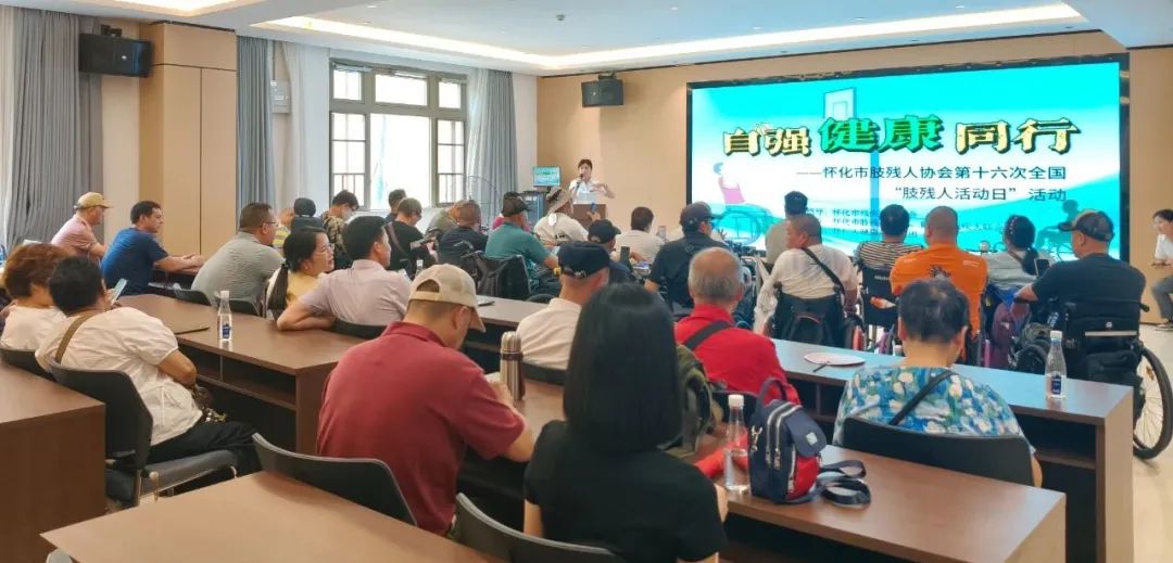 活動(dòng)儀式上,懷化市殘疾人聯(lián)合會(huì)副理事長(zhǎng)楊柳深入解讀了“自強(qiáng)、健康、同行”的主題內(nèi)涵,強(qiáng)調(diào)自強(qiáng)不息、健康生活及社會(huì)攜手同行的重要性。緊接著,懷化市肢殘協(xié)會(huì)主席王振萍發(fā)表講話,他表達(dá)了對(duì)肢殘人群體的深切關(guān)懷,鼓勵(lì)大家攜手共進(jìn),為建設(shè)“無(wú)障無(wú)礙、有情有意”的新懷化而努力。之后,懷仁五調(diào)研修事業(yè)部的劉芳老師帶來(lái)專業(yè)健康講座,為肢殘人代表們普及健康知識(shí),助力他們養(yǎng)成良好健康生活方式。